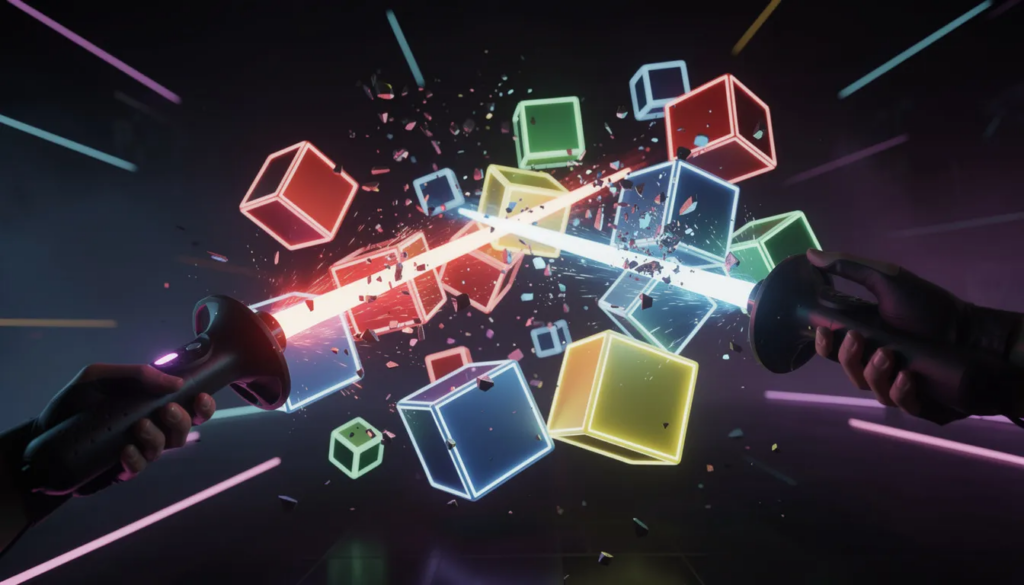 Beat Saber remains the first game most people should install on any headset. This rhythm game tasks you with slicing color-coded blocks to the beat using lightsaber-like controllers, and it works equally well as a party game, fitness routine, or solo skill challenge. With over 100 million units sold and music packs spanning pop, EDM, and custom community songs, its replayability is essentially infinite.